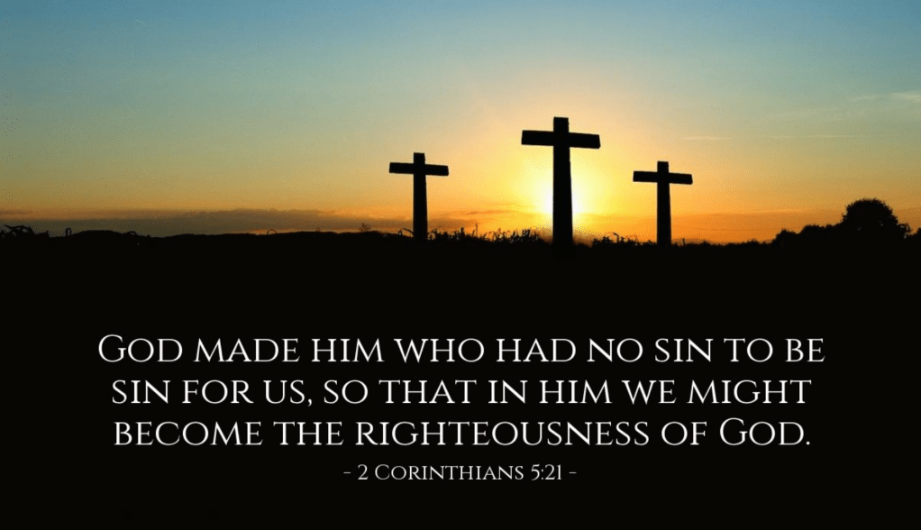 “God made him who had no sin to be sin for us, so that in him we might become the righteousness of God” (2 Corinthians 5:21).