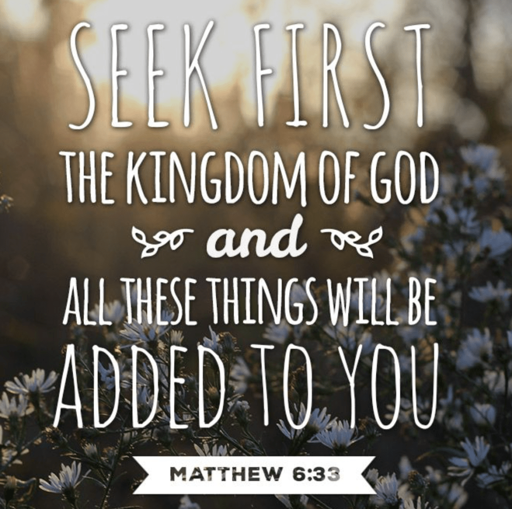 “Seek first his kingdom and his righteousness, and all these things will be given to you as well” (Matthew 6:33).