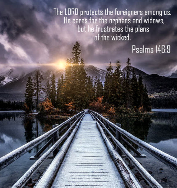 “The LORD watches over the foreigner and sustains the fatherless and the widow, but he frustrates the ways of the wicked” (Psalm 146:9).