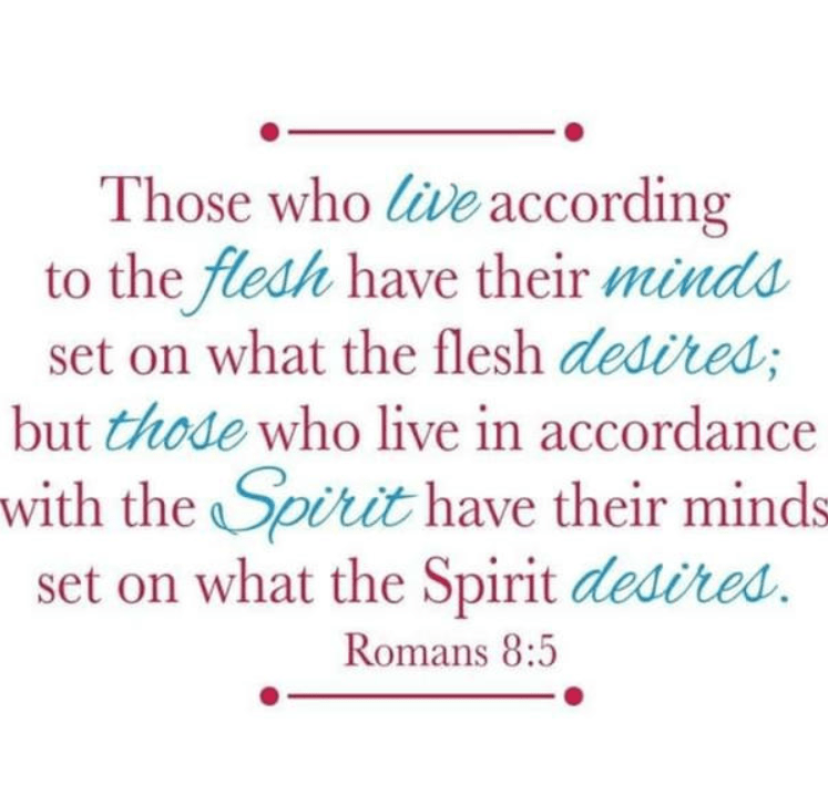 “Those who live according to the flesh have their minds set on what the flesh desires; but those who live in accordance with the Spirit have their minds on what the Spirit desires” (Romans 8:5).