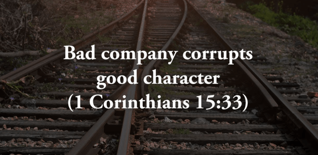 “Do not be misled: Bad company corrupts good character” (1 Corinthians 15:33).
