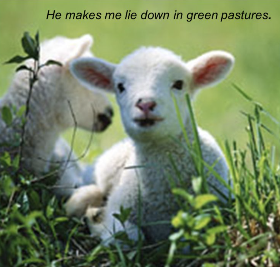 “He makes me lie down in green pastures…” (Psalm 23:2).