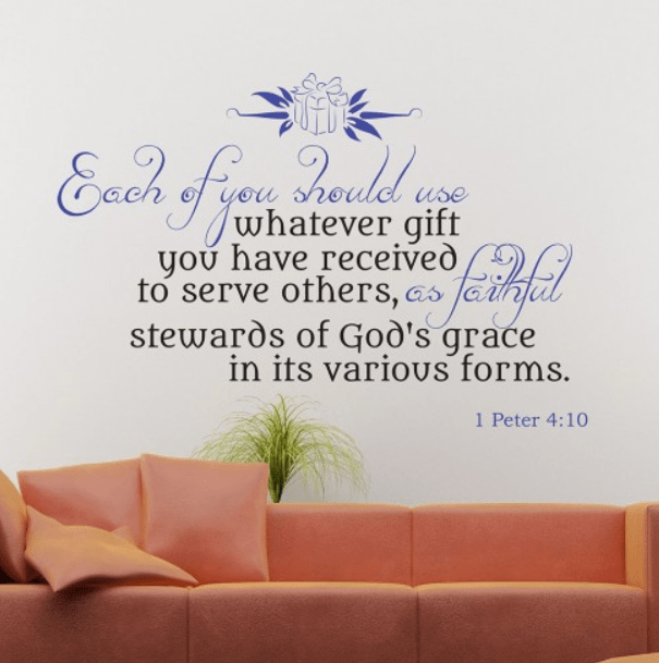 “Each of you should use whatever gift you have received to serve others, as faithful stewards of God’s grace in its various forms” (1 Peter 4:10).
