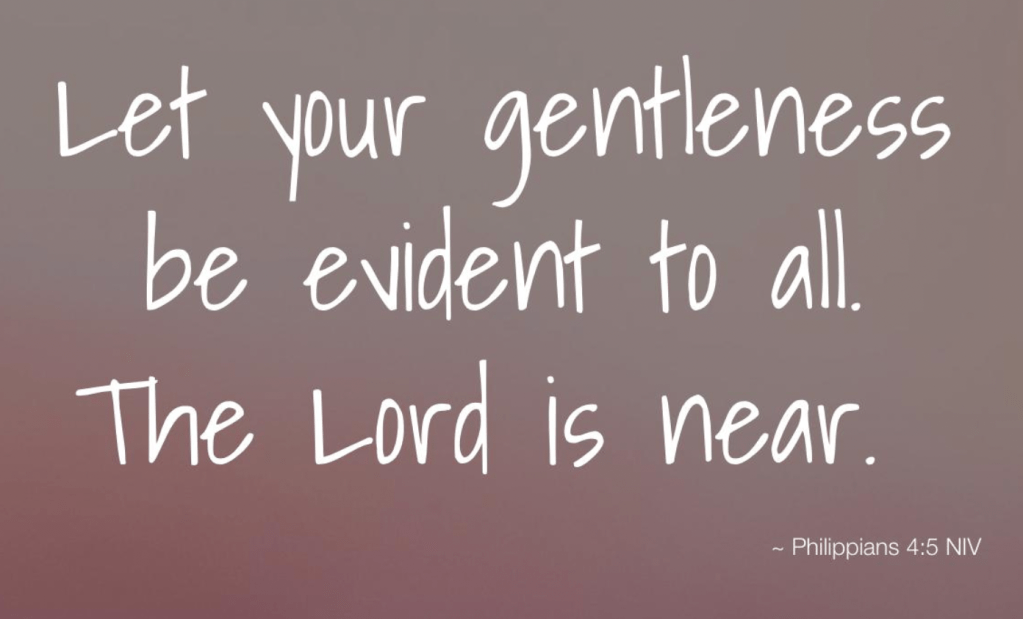 “Let your gentleness be known to all. The Lord is near” (Philippians 4:5).