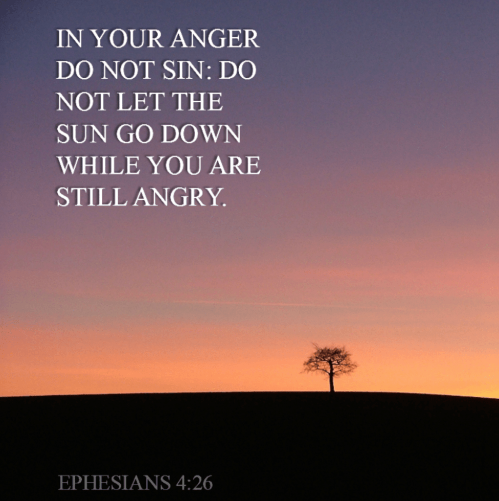 “In your anger do not sin: Do not let the sun go down while you are still angry, and do not give the devil a foothold” (Ephesians 4:26-27).