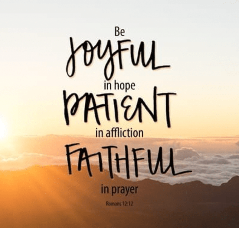 “Rejoice in hope, be patient in tribulation, be constant in prayer” (Romans 12:12).