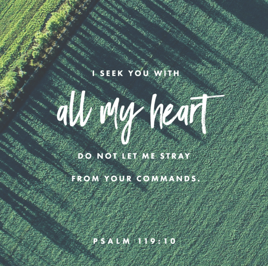 “I seek you with all my heart; do not let me stray from your commands” (Psalm 119:10).