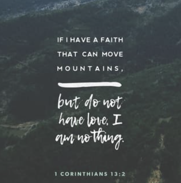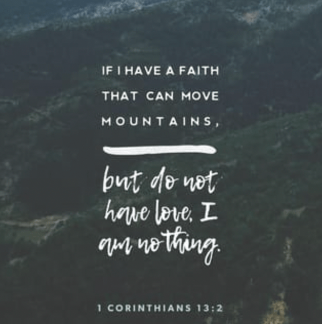 “If I have faith that can move mountains, but do not have love, I am nothing” (1 Corinthians 13:2).