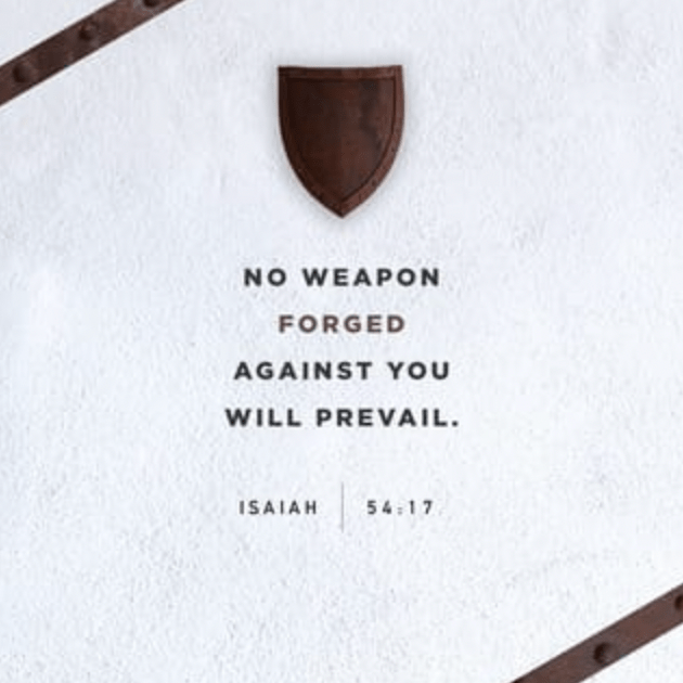 “No weapon fashioned against you will prevail” (Isaiah 54:17).