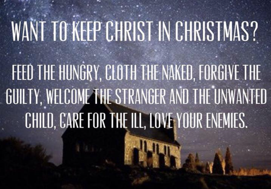 I am sure by now, most of you have seen a similar meme as the one above. “If we want to keep Christ in Christmas, feed the hungry, clothe the naked, forgive the guilty, welcome the stranger and the unwanted child, care for the ill, love your enemies.”
