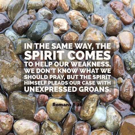 “In the same way, the Spirit helps us in our weakness. We do not know what we ought to pray for, but the Spirit himself intercedes for us through wordless groans” (Romans 8:26).