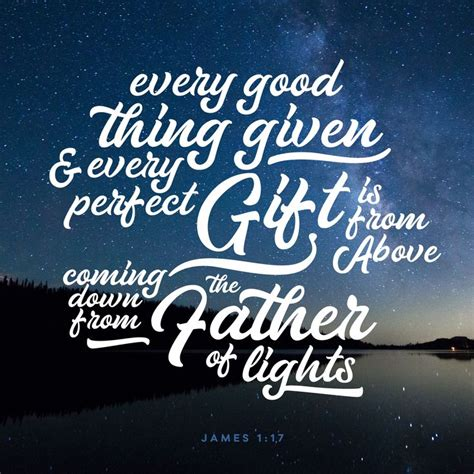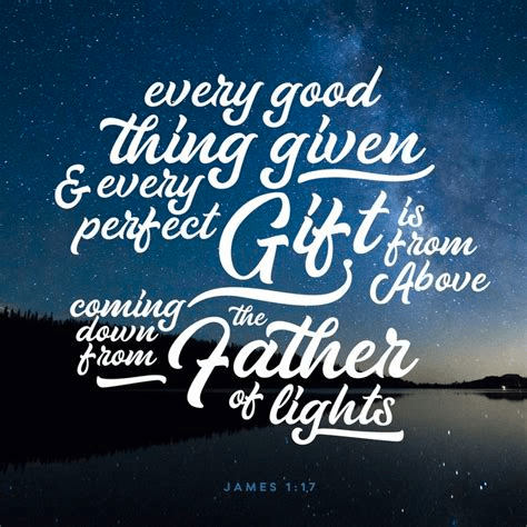 “Every good and perfect gift is from above, coming down from the Father of the heavenly lights, who does not change like shifting shadows” (James 1:17).